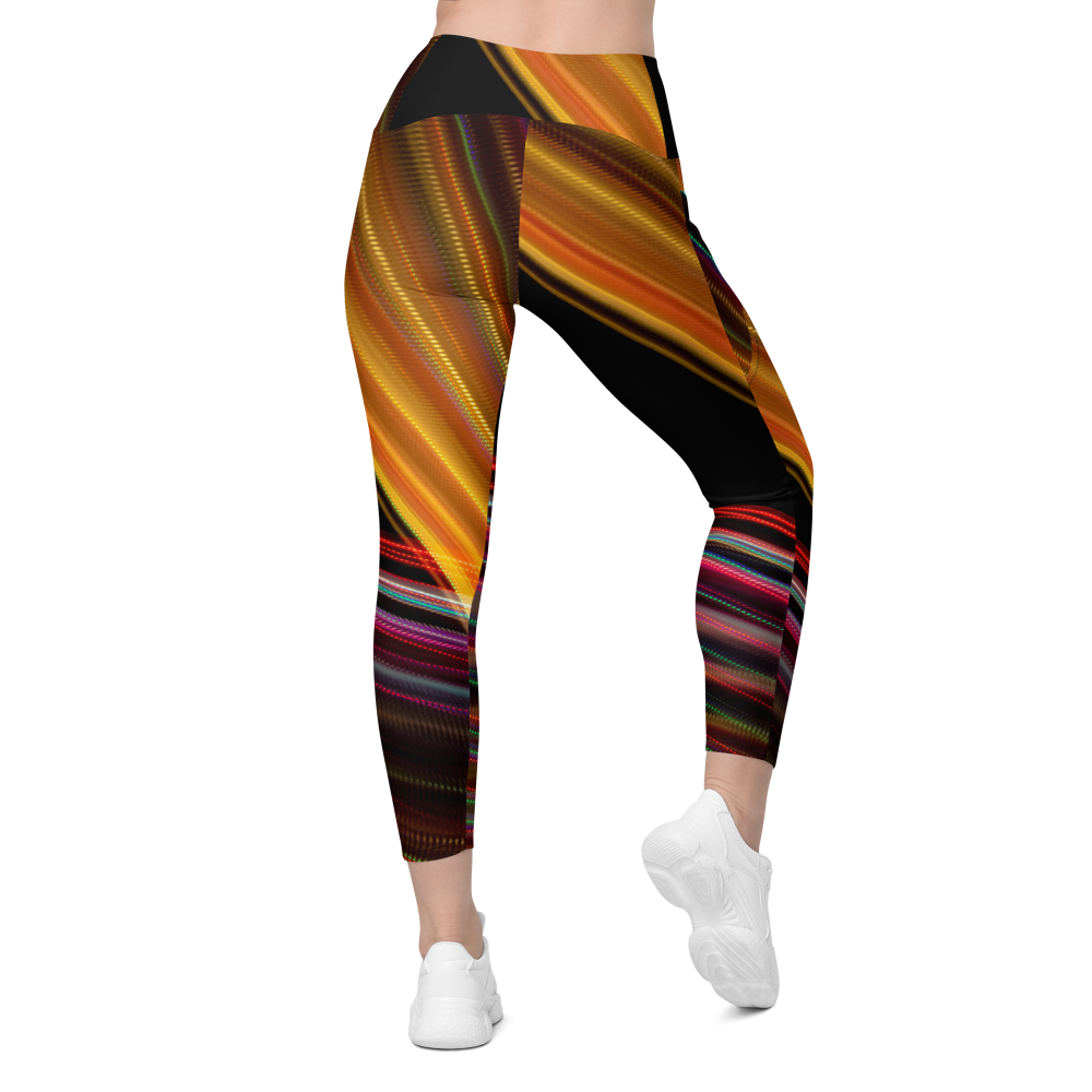 Look fabulous during workouts with these semi-compression Crossover Leggings with Pockets. These Crossover Leggings offer a flattering crossover waistband that helps flatten the waist and offers a fashionable look. They are made of a comfortable semi-compression material that is supportive and holds you in without being too constricting. The leggings have two side pockets that are perfect for holding your phone, keys, or any other small essentials. The crossover waistband is not only stylish but it also helps to smooth out your tummy area. The leggings are available in a number of unique designs and colors and are sure to become your new favorite go-to pair of leggings.